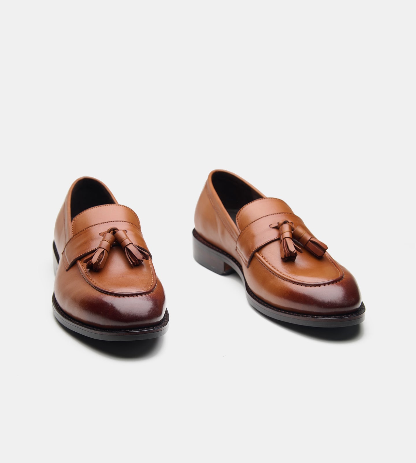 Sophisticated and timeless, these handmade tassel loafers are crafted from premium cognac leather and built using traditional Hand-Welted construction for exceptional durability and comfort.